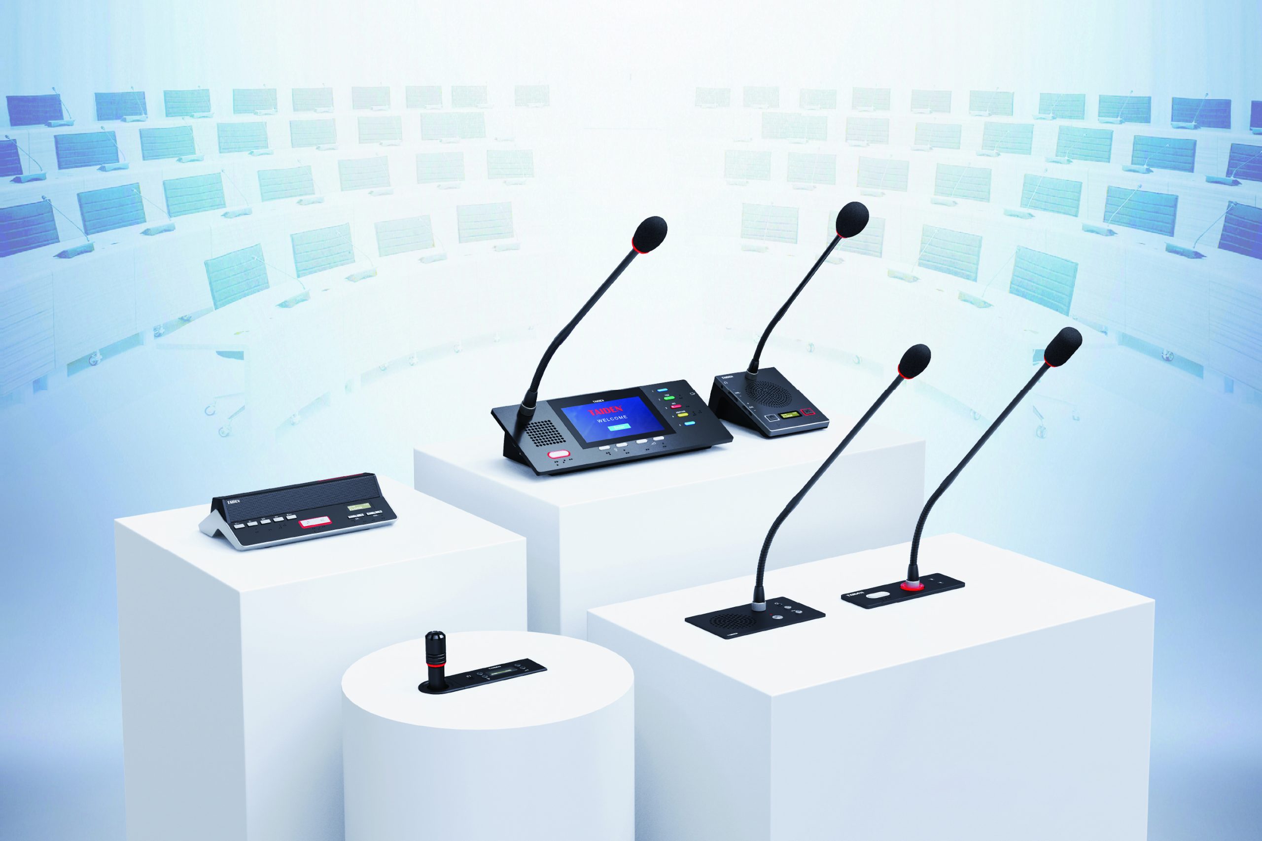 TAIDEN new premium fully digital conference system is the core to building a multi-functional conference ecosystem because of its wide range of products (discreet models, flush-mounting models, tabletop models, etc.), powerful conference functions (discussion, voting, simultaneous interpretation, etc.) and scalability. This series can work perfectly with other TAIDEN products to provide solutions suitable for various kinds of venues. The following are some typical examples.